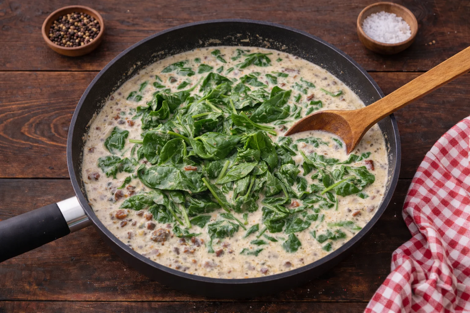 Добавляем к соусу сыр и даем ему покипеть в течение 2-3 минут. Солим и перчим по вкусу.
