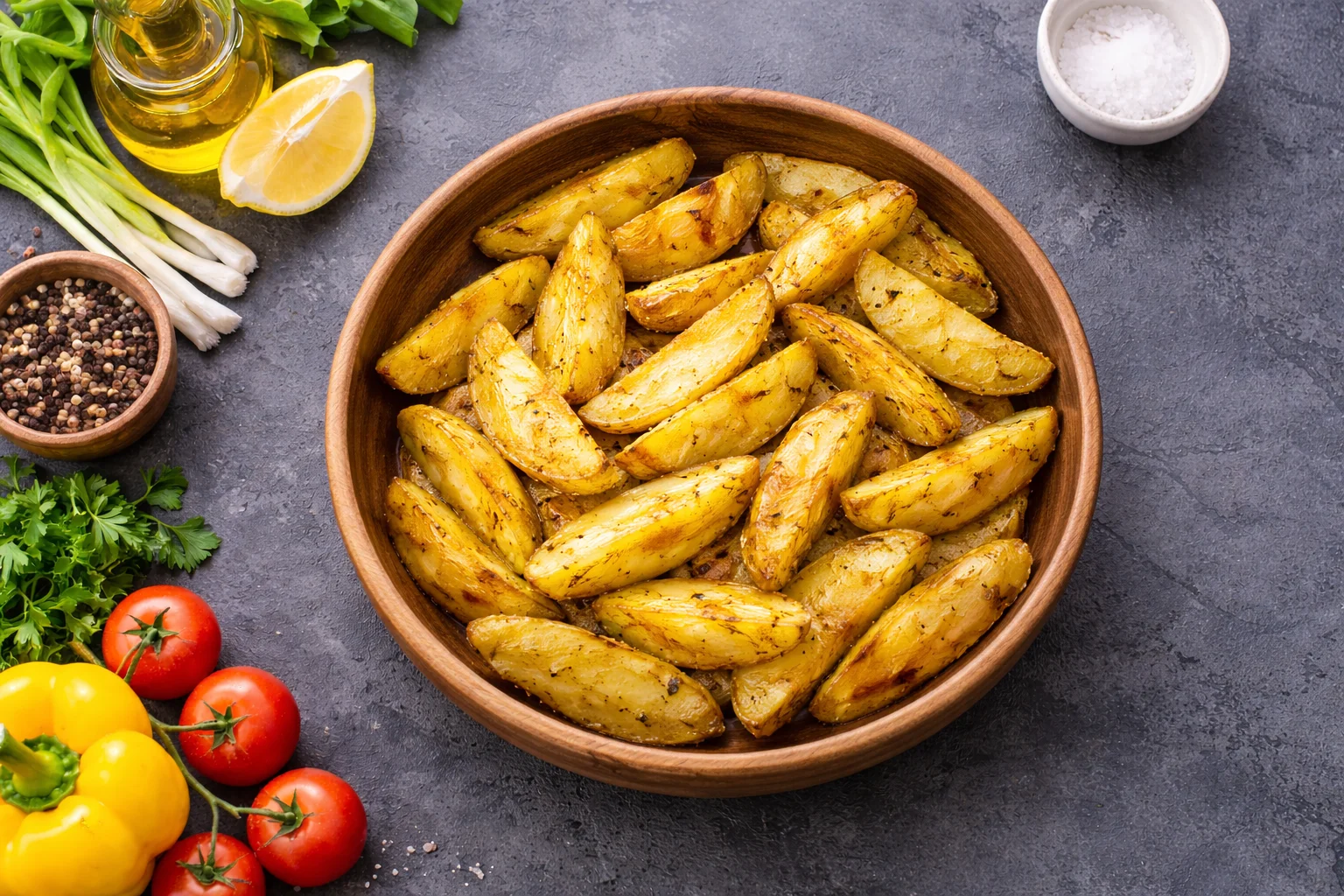 Крупно нарезаем картофель дольками, обжариваем на подсолнечном масле до образования корочки и полуготовности.