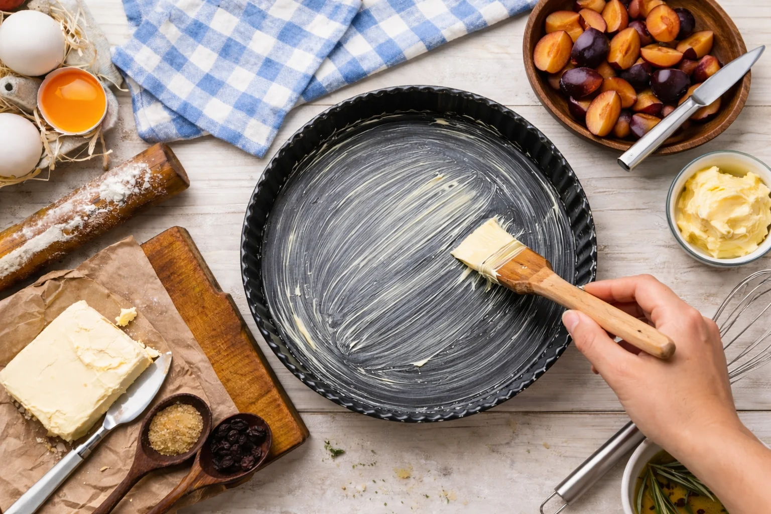 Смажьте круглую форму для выпечки сливочным маслом.