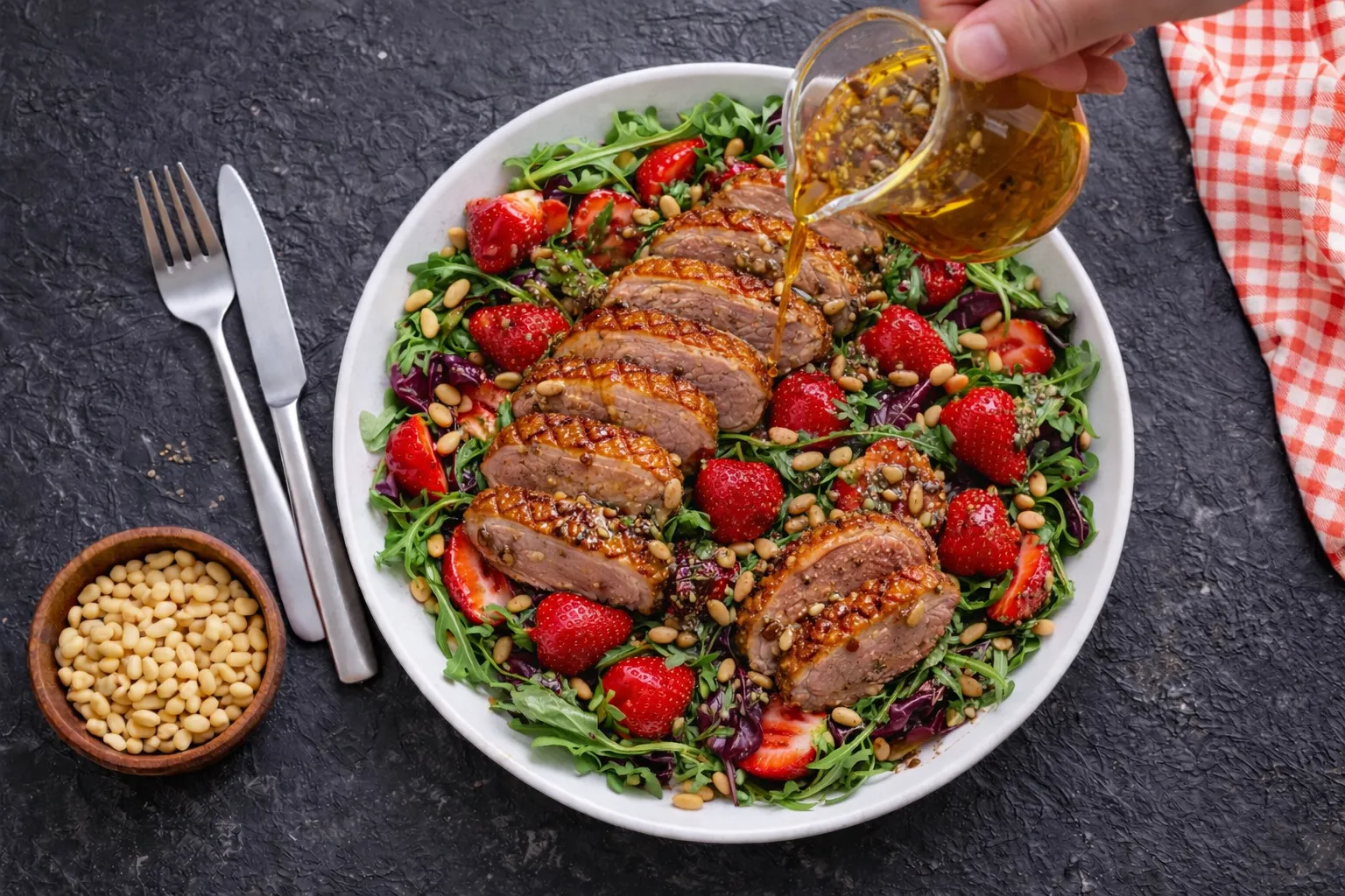 Салат с утиной грудкой и клубникой