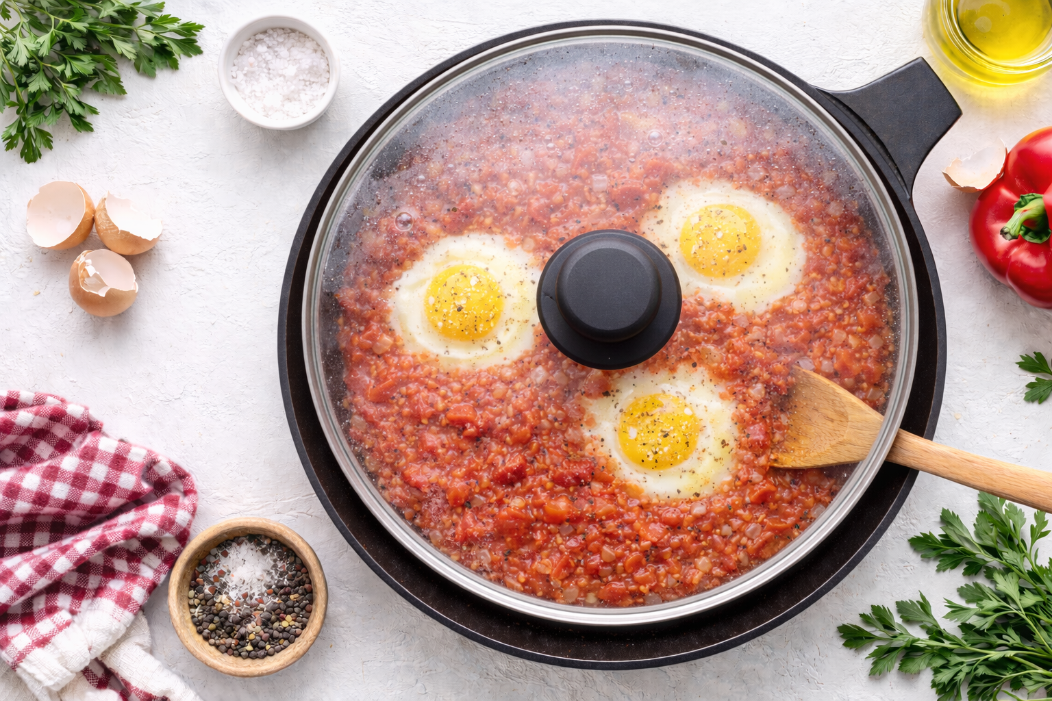 Завтрак, с которого хочется начать каждый день. Густой овощной соус, аромат специй и мягкий желток, прячущийся в тепле пряных ароматов — просто, по-домашнему и волшебно вкусно!